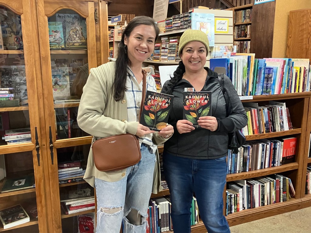Sofia and Amy, friends who challenge each other to read 50 books a year! Amazing to see Kadupul Flower on the shelf with Billy Collins at Kepler’s Books!This delightful photo is from the Winchester Book Gallery in Virginia, during the community’s annual Christmas market. First library loan at a local high school!Mary, a librarian at the Clovis Regional Library, poses with Kadupul Flower after the November 15th reading. Shelf Life Books, the largest independent bookstore in Richmond, VA, offers Kadupul Flower in-store. One of the awesome associates from A Book Barn in Clovis, California. For Vermont locals, Phoenix Books sells Kadupul Flower in-store.Vromans Bookstore of Pasadena is a prestigious landmark… and home to this copy of Kadupul Flower. Jefferson, facilitator of the Fresno Writers Summit, with Kadupul Flower. Kadupul Flower at the table-top bookstore of the Fresno Writers Summit, September 27th.